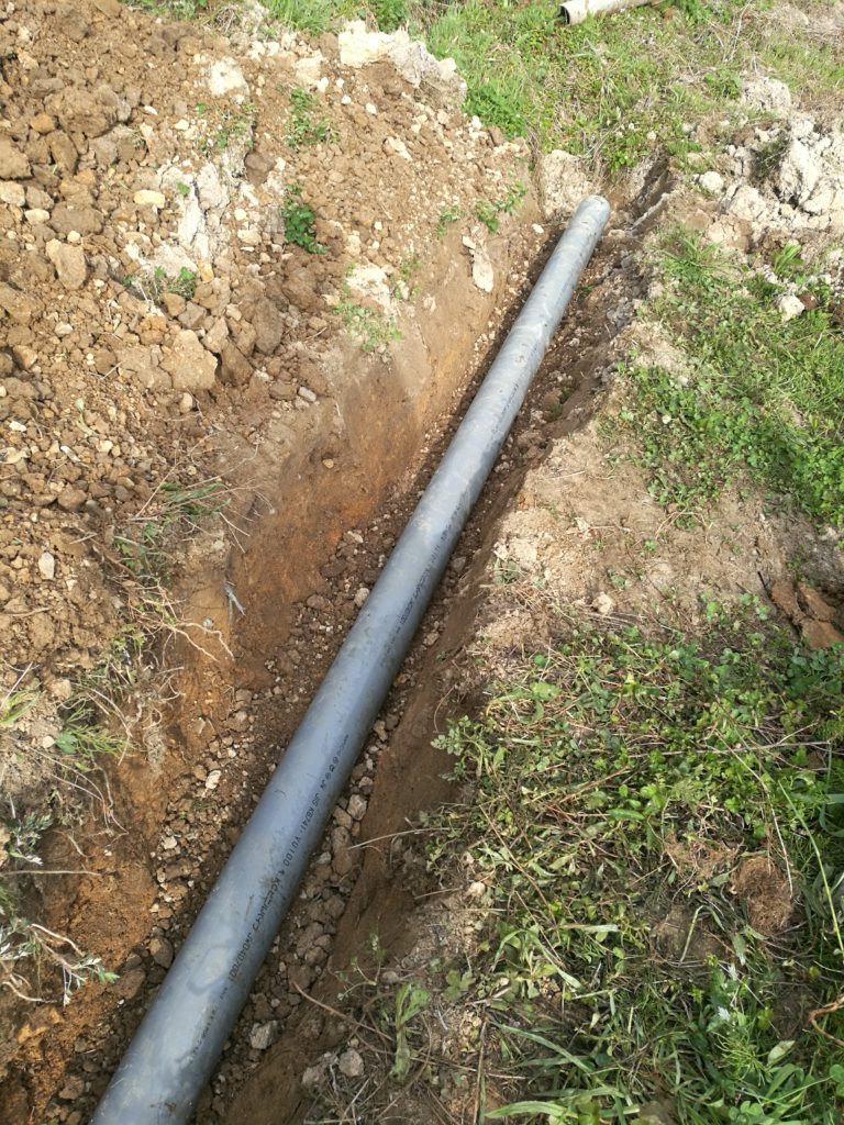 溝を掘ったら排水しないといけないのですが田んぼの出入り口を横切るので、パイプを埋めます。